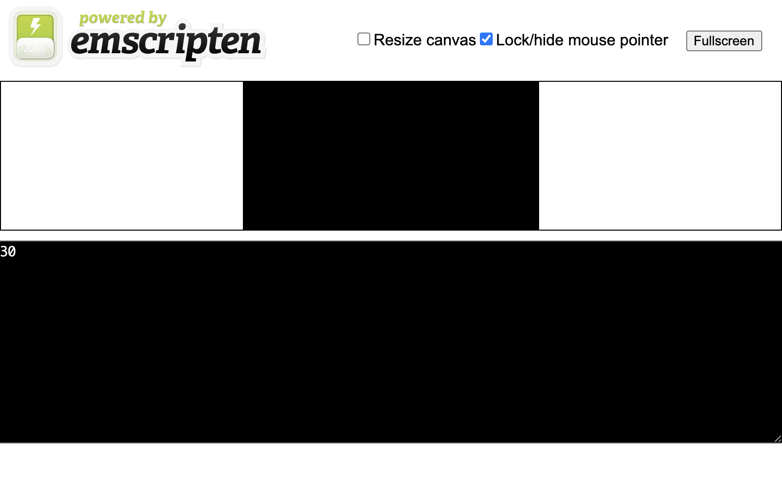 接着,启动这个本地服务器后,我们便可以在浏览器中通过 8888 端口来访问刚刚由 Emscripten 编译生成的 main.html 文件。如果你顺利地到达了这里,那么恭喜,你将可以看到如下界面:
