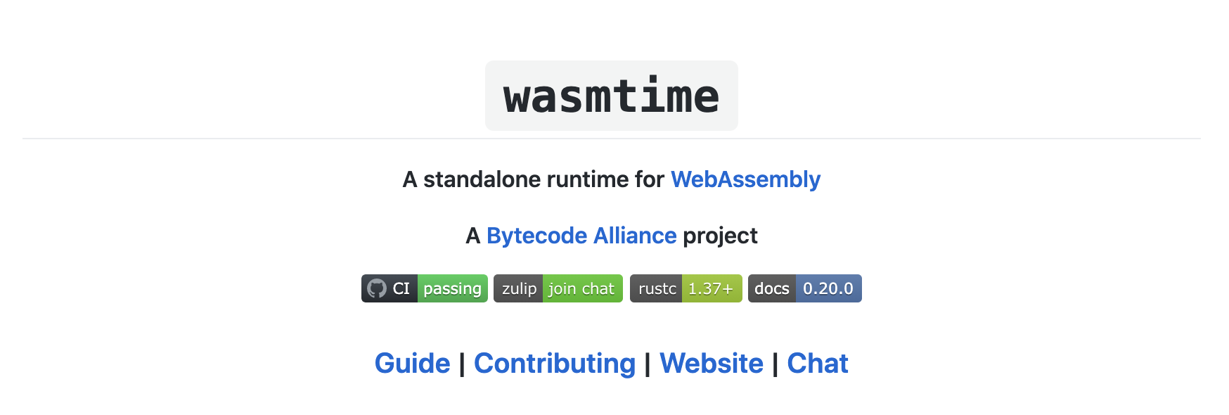 对于 out-of-web 领域中的 Wasm 应用,根据第 07 讲中的介绍,我们知道借助于 WASI,这些应用可以在保证良好可移植性的情况下,进一步与各类操作系统资源打交道。而为了能够在 Web 浏览器之外的环境中执行 Wasm 模块中的字节码,则需要诸如 Wasmtime、Lucet 等各类 Wasm 运行时的支持。