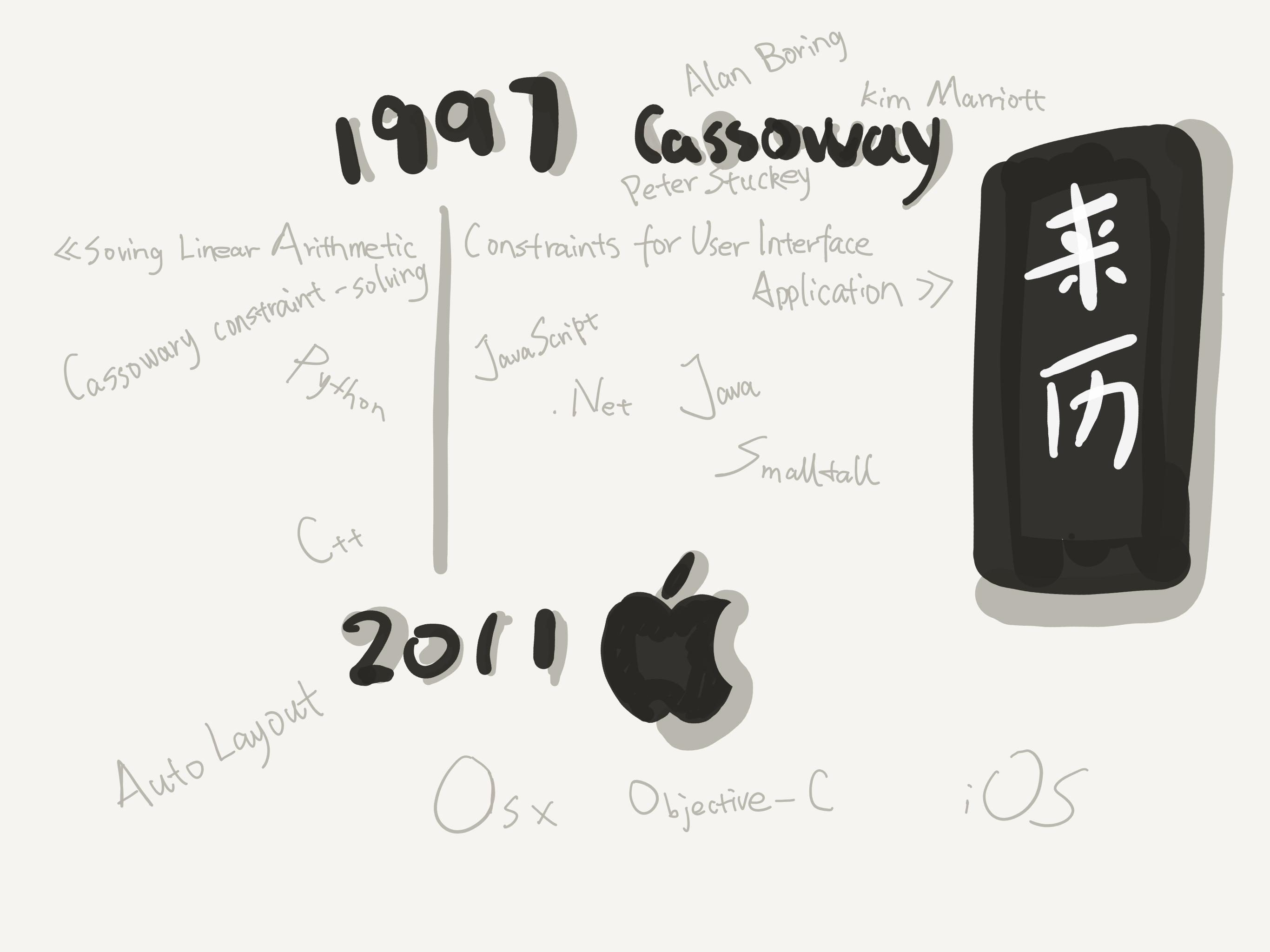 • 一个是1997年,Auto Layout 用到的布局算法 Cassowary 被发明了出来;