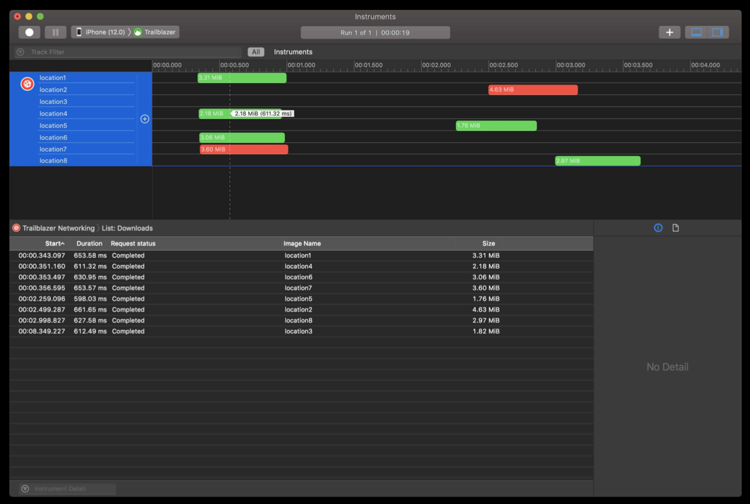 苹果公司在 WWDC 2018 Session 410 Creating Custom Instruments 里提供了一个范例:通过 os_signpost API 将图片下载的数据提供给 Analysis Core 进行监控观察。这个示例在 App 的代码如下所示: