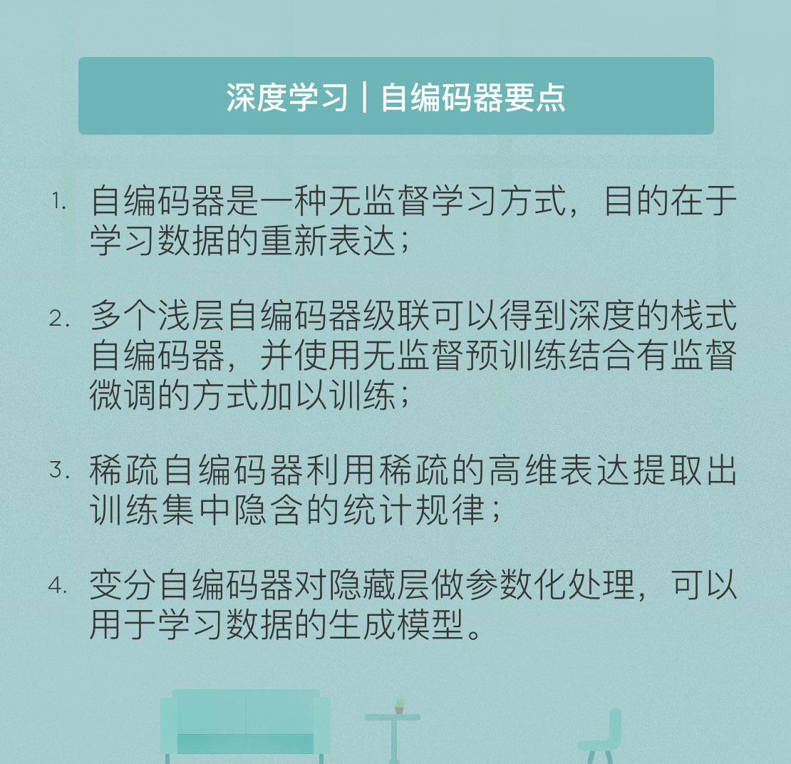 今天我和你分享了深度学习中自编码器的原理与特点,其要点如下: