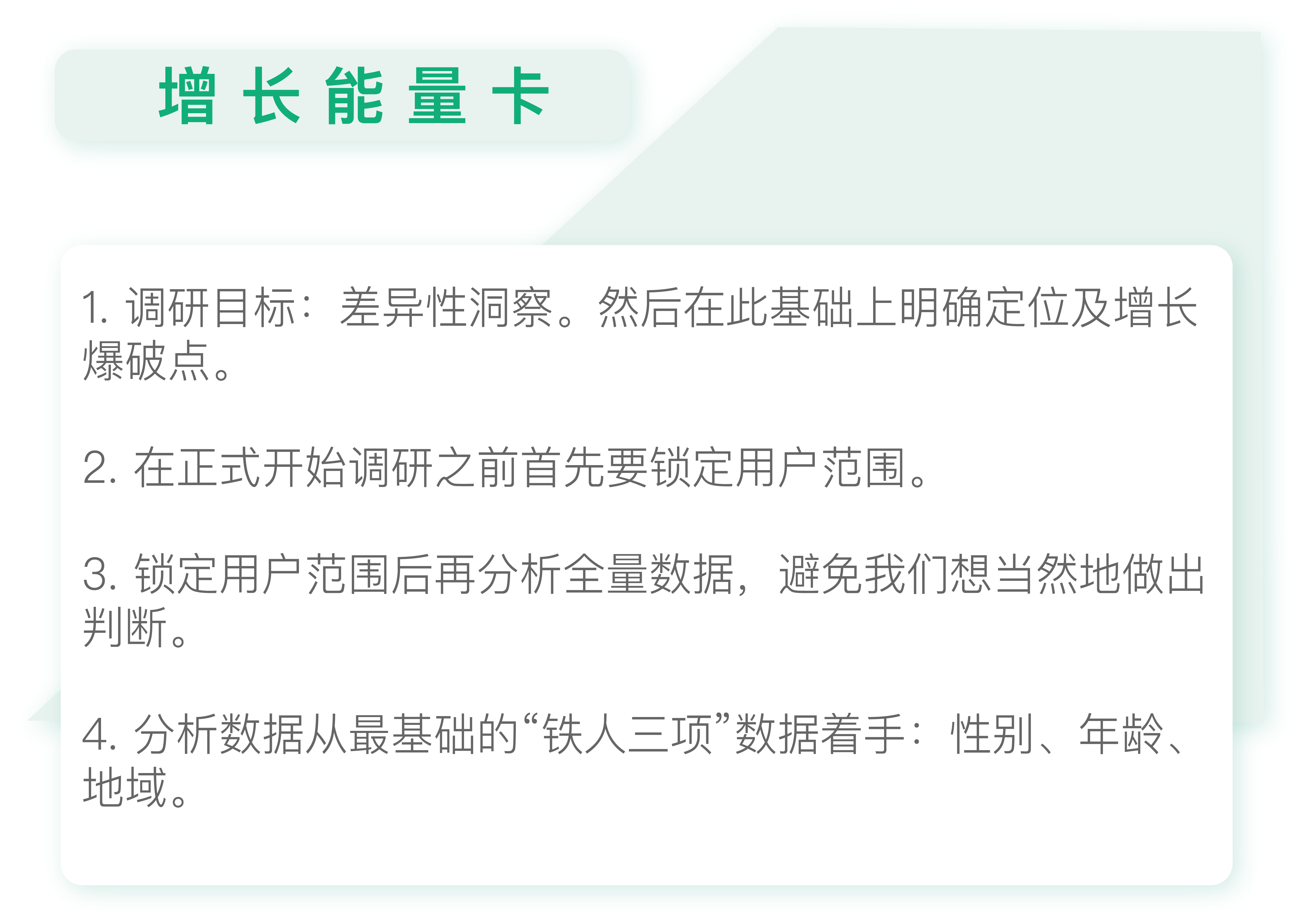 “铁人三项”数据是最基础的数据,所有产品通用,而且非常容易挖掘出差异点。