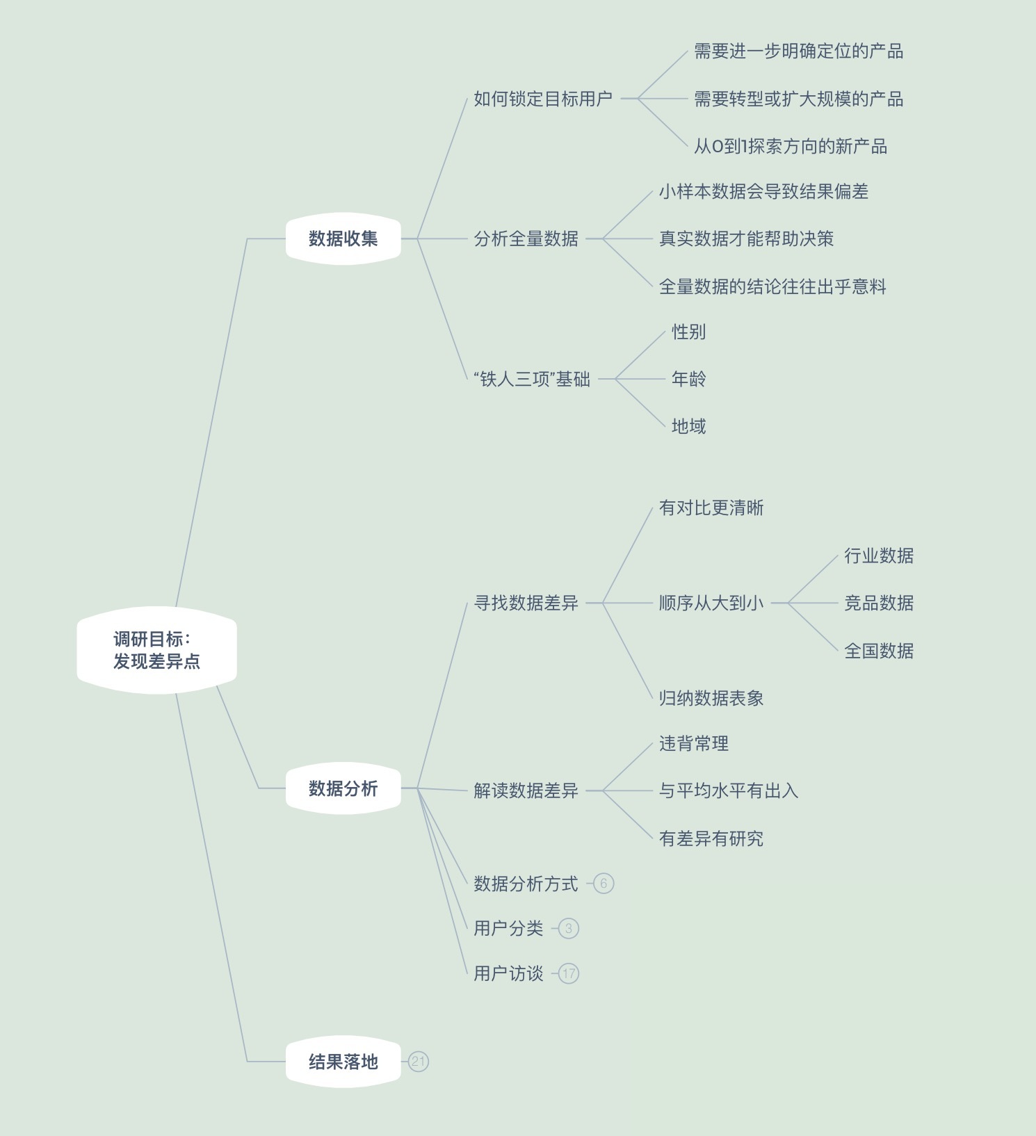 今天我们的用户调研知识地图推进到了数据分析的部分。希望你可以在知识地图中,根据自己的见解和实际情况进行补充。