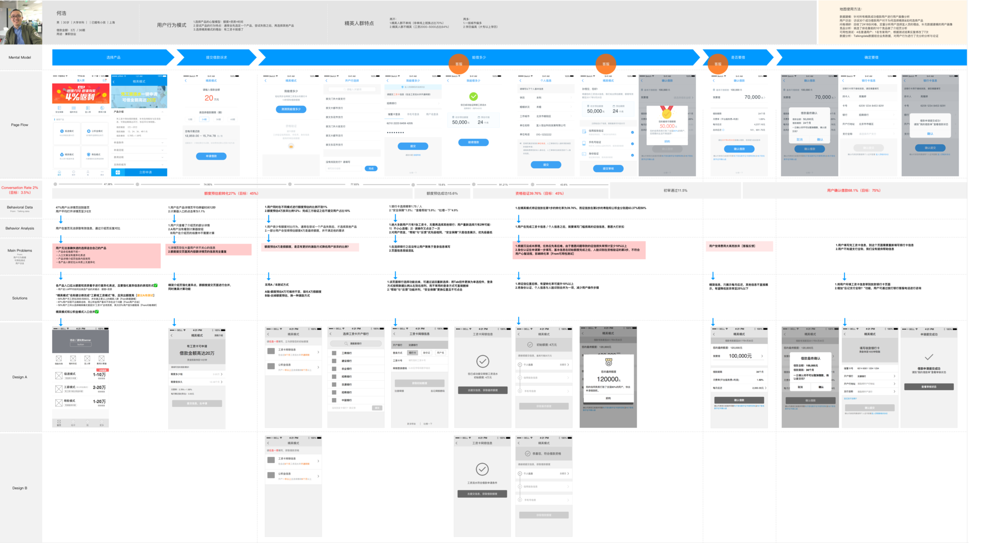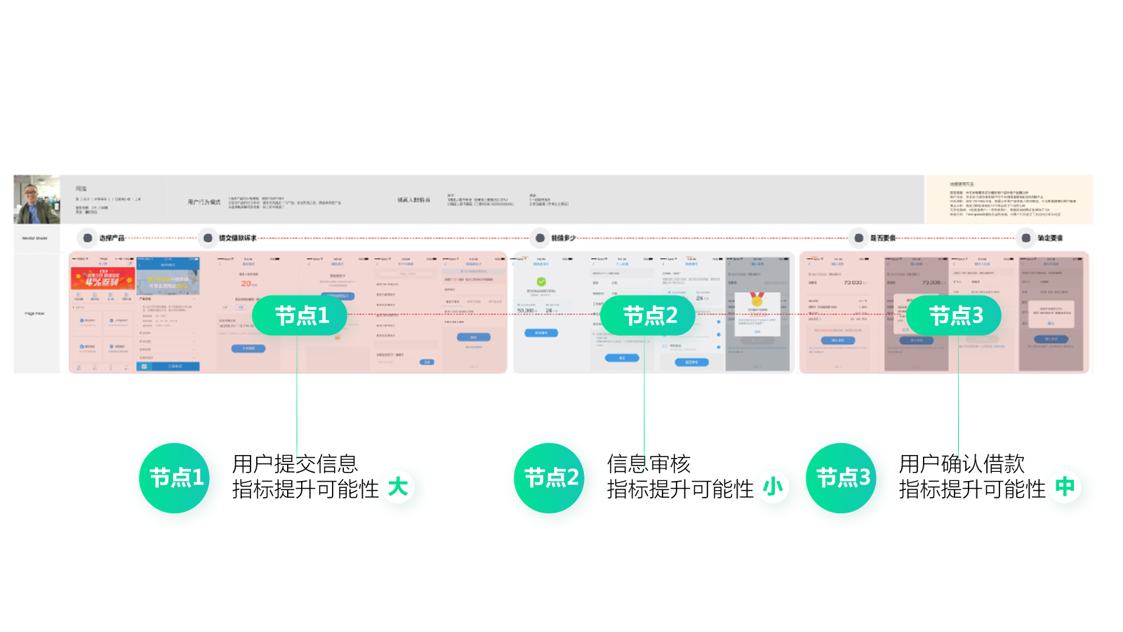由于以前的借款流程较复杂、体验欠佳,所以我们用传统的用户体验地图的方法重新优化了借款流程。