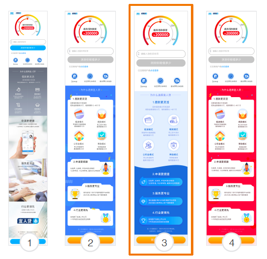 因为访谈过用户,我们才能真实的感受到用户是一群什么样的人,他们勤劳、朴实,喜欢醒目、直接的信息。所以我们的布局变得更规整、内容更详尽、信息更醒目,视觉风格更“接地气”,这些都和访谈时得到的洞察有关。另外围绕一级方向,我们也特别突出了额度。