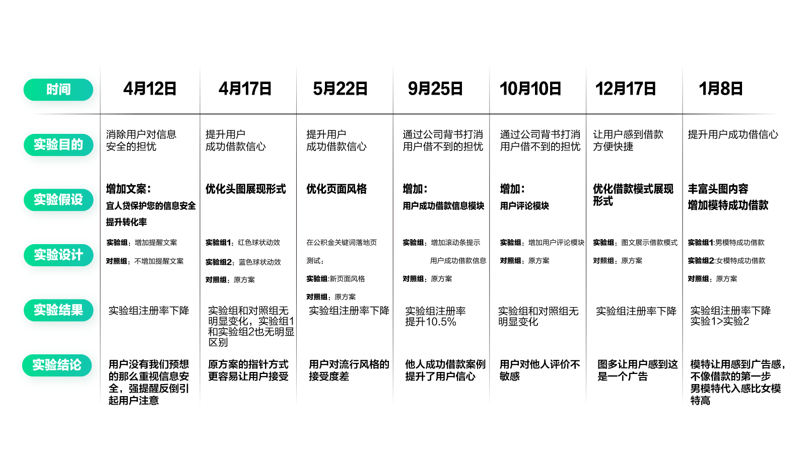 另外,做实验需要考虑时间周期。比如一个大型的首页改版,一般要看一个月以上的数据,因为一开始用户会感觉不习惯,经过一段时间才能养成新的习惯。所以不能看几天数据就盲目判断结果。