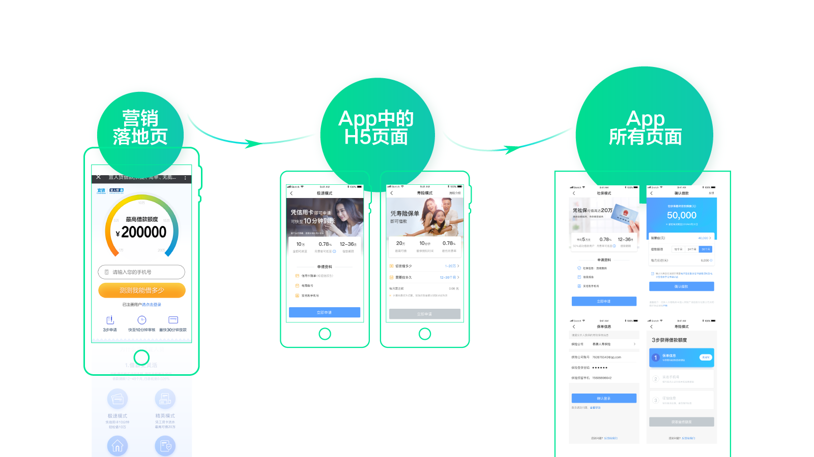 首先,在营销落地页上反复测试,得到增长规律;然后再把这些规律复用到App中的若干H5页面上看效果,后来发现转化有了显著的提升;接下来我们向不同业务线的产品经理兜售这套方案,最终有一条业务量较小的新业务线愿意采用这套样式。