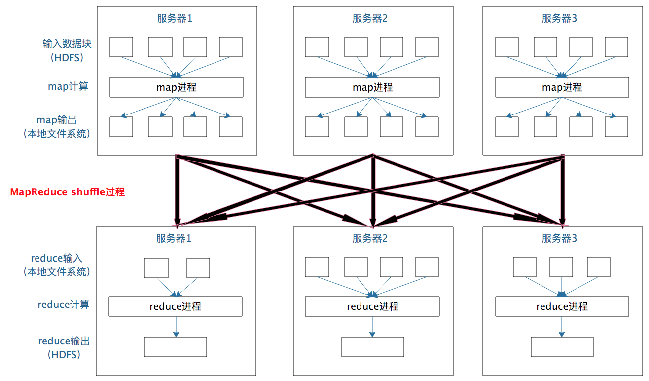 一个数据集中的多个数据分片需要进行分区传输,写入到另一个数据集的不同分片中,这种数据分区交叉传输的操作,我们在MapReduce的运行过程中也看到过。