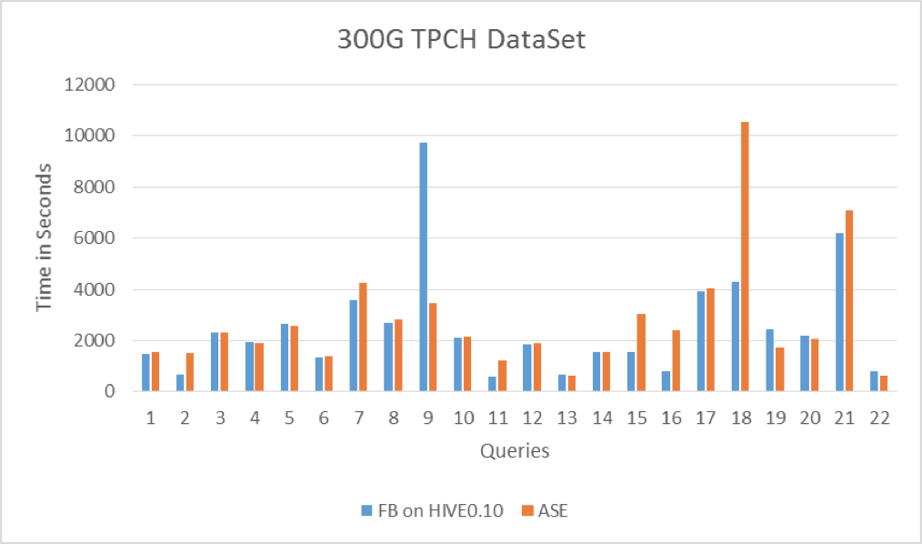 Panthera(ASE)和Facebook手工Hive QL对比测试结果如下。