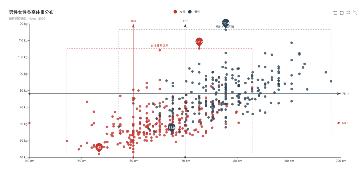 数据分析的时候,散点图可以有效帮助分析师快速发现数据分布上的规律与趋势,可谓肉眼聚类算法。