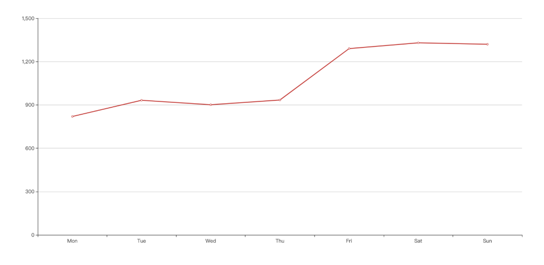 折线图是用得最多的可视化图表之一,通常横轴为时间,用于展示在时间维度上的数据变化规律,正向指标(比如日活跃用户数)斜率向上,负向指标(比如用户流失率)斜率向下,都表示网站运营日趋良好,公司发展欣欣向荣。