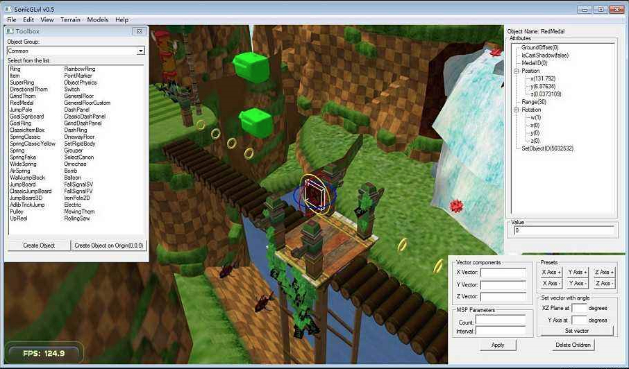 这里有一个3D游戏的关卡编辑器的界面。我们常见的关卡编辑器的界面一般都是这样的。这个界面最左侧的对话框,是物件的选择界面,具体包括关卡内物件的选择和摆放;界面右侧的对话框是属性选择界面,定义这个物件的属性,比如这个物件是否可以弹跳、爆炸等等;界面右下角是物件X、Y、Z轴的编辑,可以自定义物件的拉伸和缩放。
