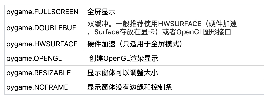 然后,我们先把Pygame的所有组件都初始化。接下来,我们调用display类里的set_mode函数来对屏幕进行一个初始化。