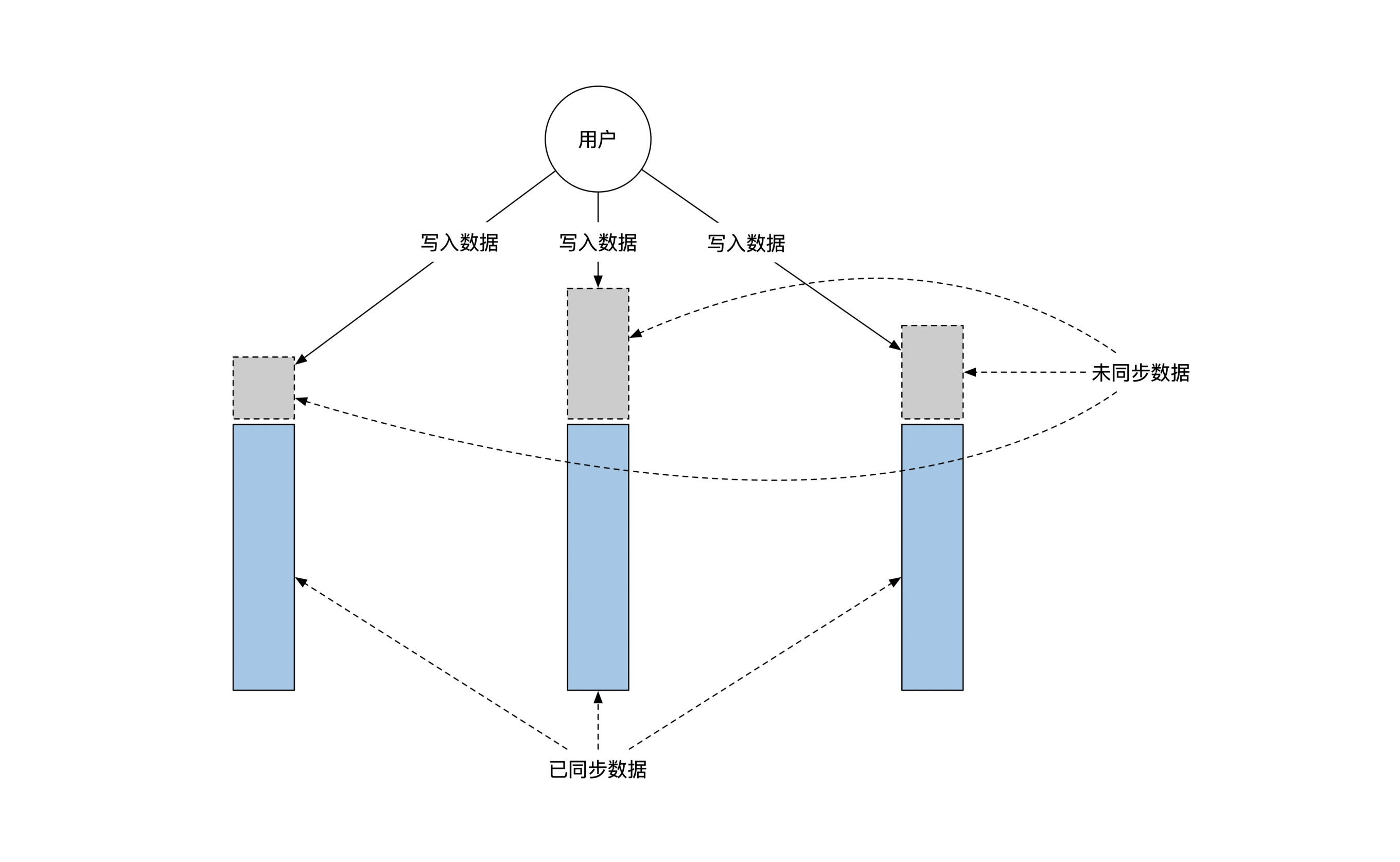 共识算法对同步的正确性有一个定义。当这个定义满足了之后,主节点会通知你请求已经处理成功。你需要注意的规律是每台机器的主从角色是会一直变化的,但是共识算法会保证不管怎么变化,集群里最多只有一台机器是主节点。