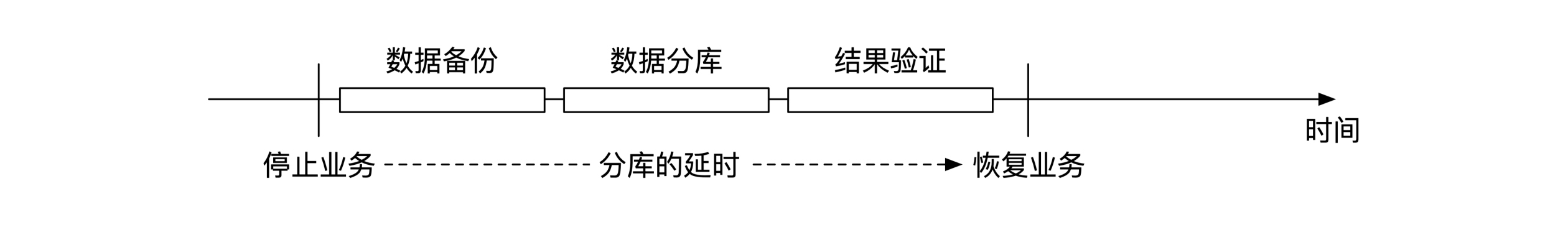 虽然这个方法清晰简单,但是带来的问题是业务需要暂停很久的时间。这个过程的示意图如下: