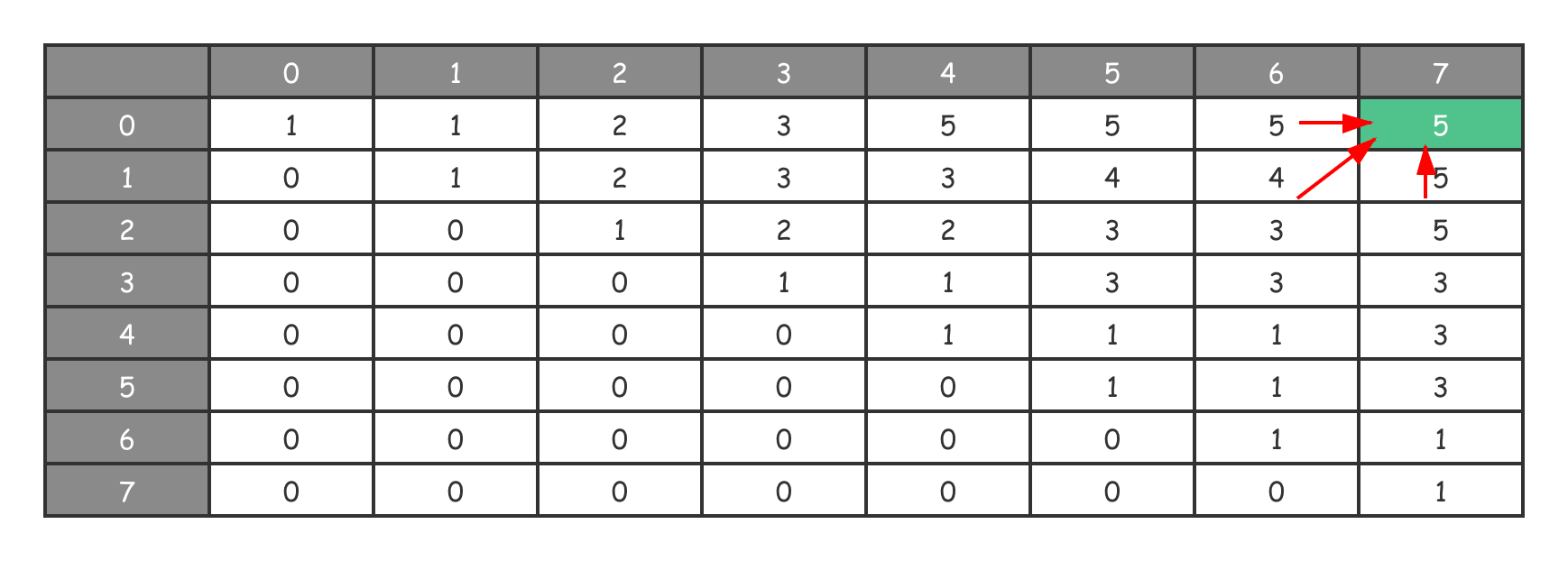 dp[i][j] = dp[i - 1][j - 1] + 1;