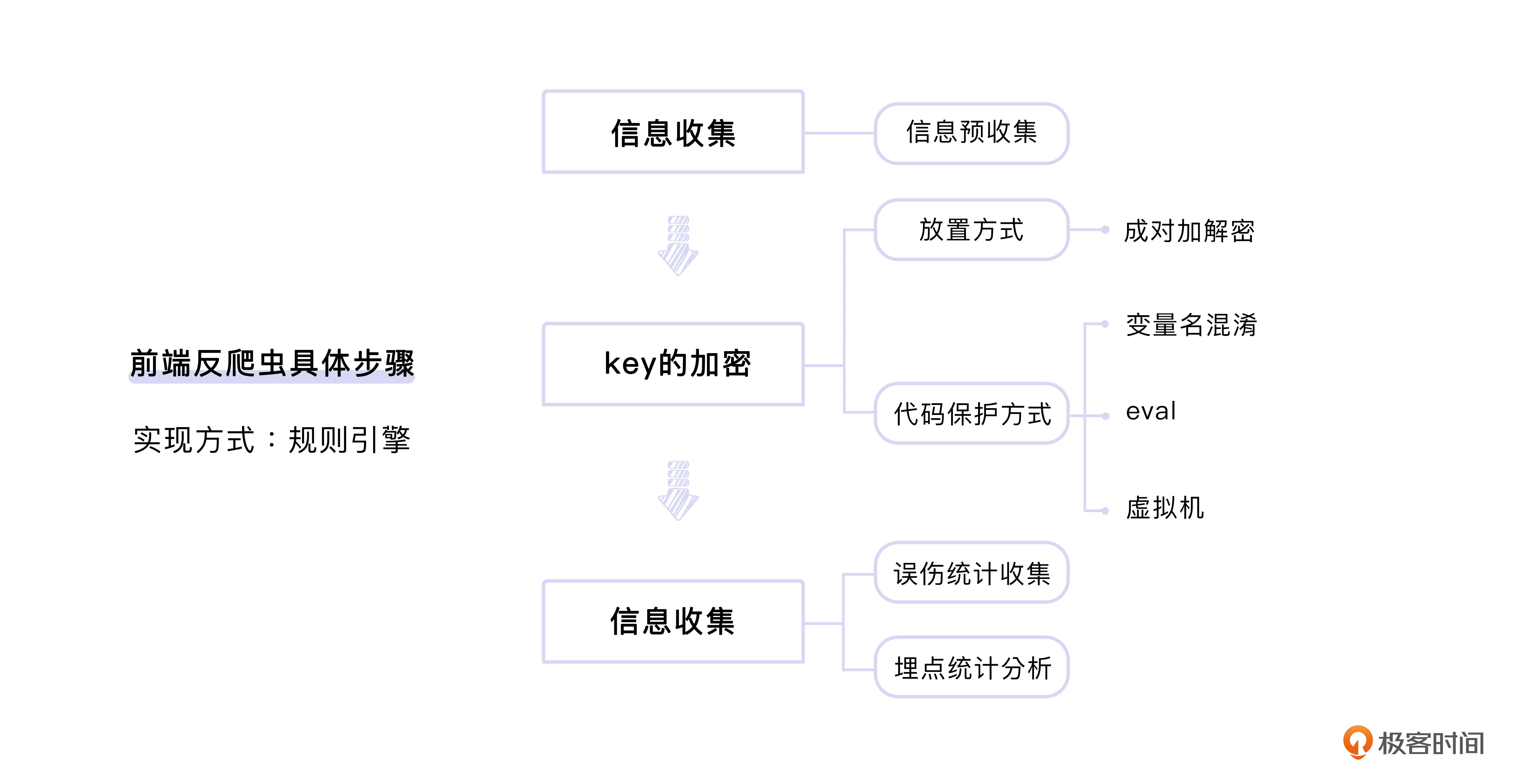 这一讲,我们就把目光聚集在信息收集以及规则引擎这两大辅助部分,完成前端反爬虫的主要工作。
