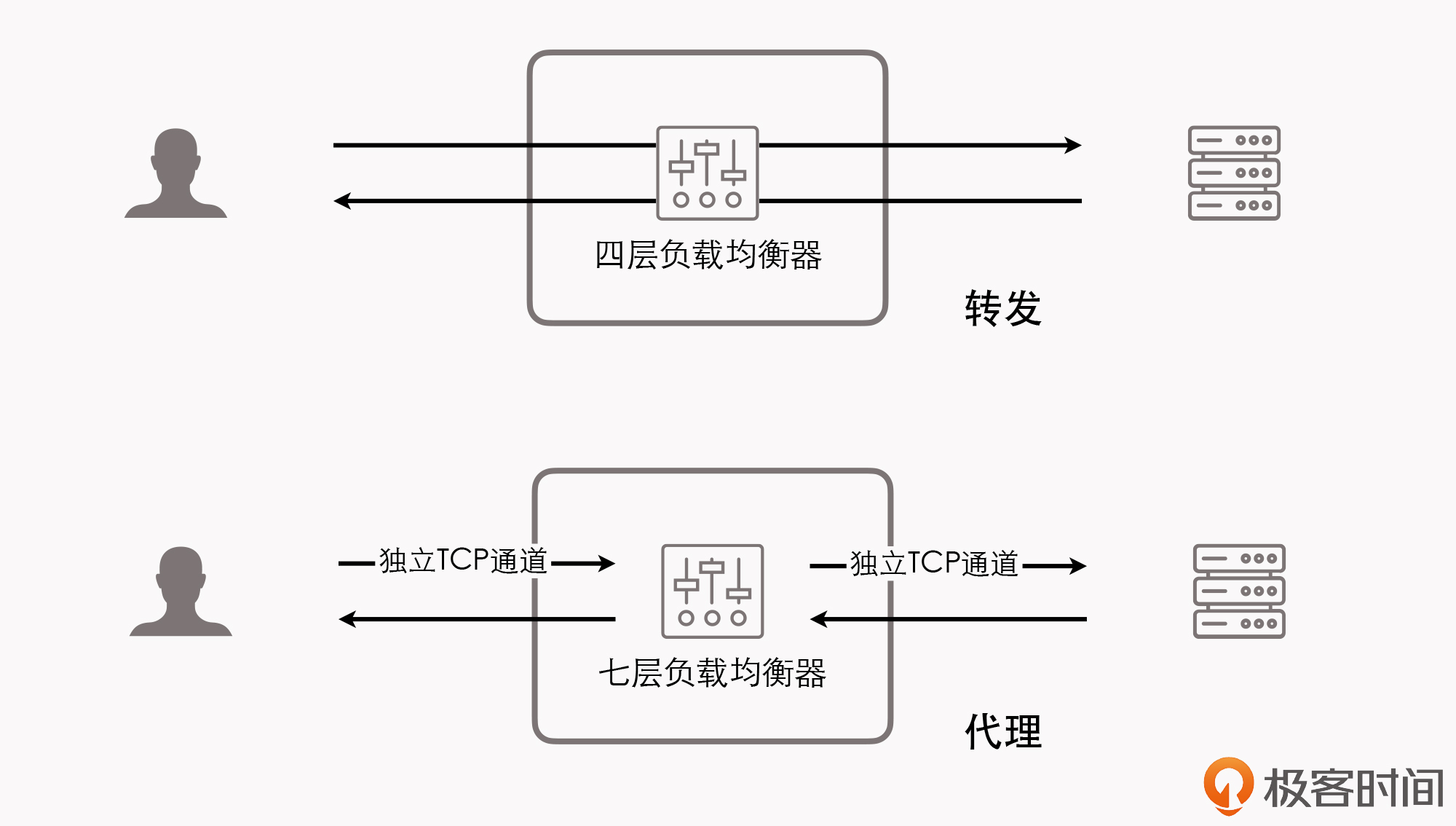 但出于习惯和方便,现在几乎所有的资料都把它们统称为四层负载均衡,这里我也就遵循习惯,同样称呼它为四层负载均衡。而如果你在某些资料上,看见“二层负载均衡”“三层负载均衡”的表述,这就真的是在描述它们工作的层次了,和我这里讲的“四层负载均衡”并不是同一类意思。