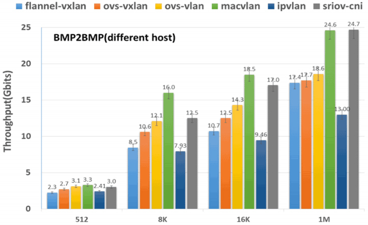 不过,虽然MACVTAP提升了SR-IOV的易用性,但是这种转接又会带来额外的性能损失,并不一定会比其他网络方案有更好的表现。