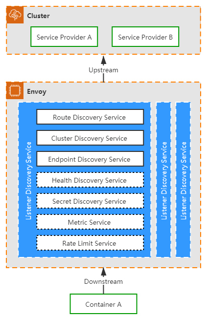 自动发现Listener的服务被称为LDS(Listener Discovery Service),它是所有其他xDS协议的基础,如果没有LDS(也没有在Envoy启动时静态配置Listener的话),其他所有xDS服务也就失去了意义,因为没有监听端口的Envoy不能为任何应用提供服务。