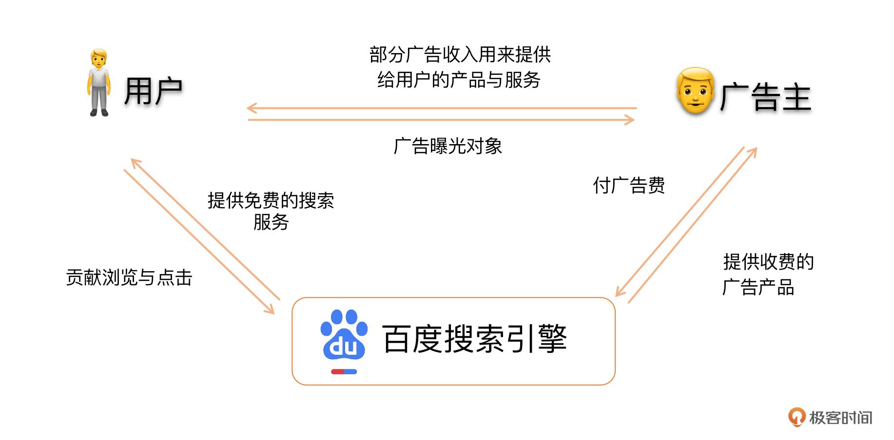 首先,一个广告产品的成功,取决于用户产品的成功,也就是你是否能够搭建一个像百度搜索引擎这样的拥有庞大的用户基数和海量用户数据的用户产品平台。不仅能够为用户提供服务,还能够作为用户和广告主信息交流的中介。关于这一点,我想和你分享两个真实的案例。