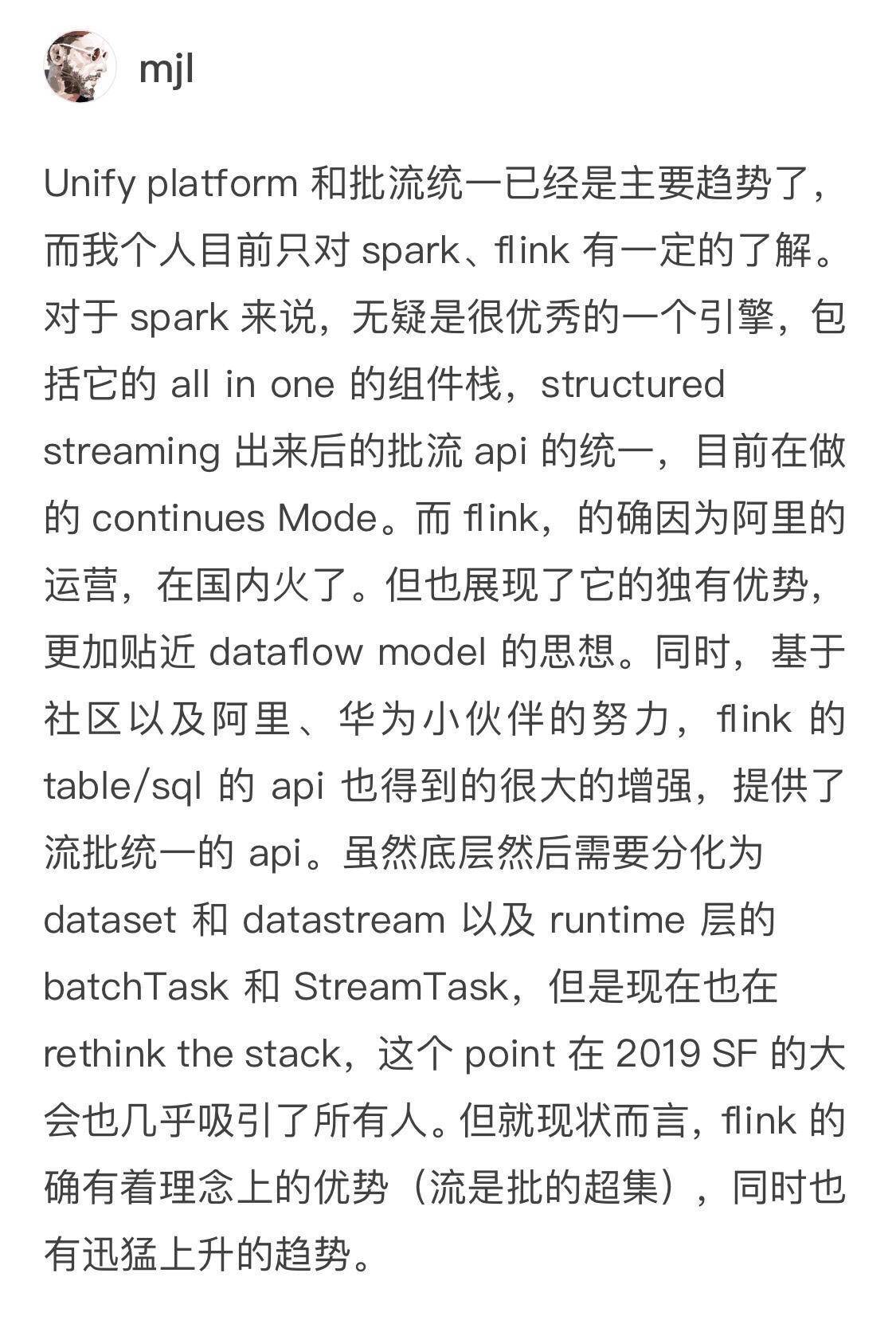 mjl在回答中阐述了他比较了解的Spark和Flink,总结得很好。