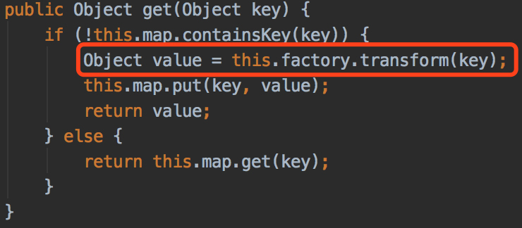 当LazyMap需要get某个参数的时候,如果之前没有获取过,则会调用ChainedTransformer.transform进行构造。