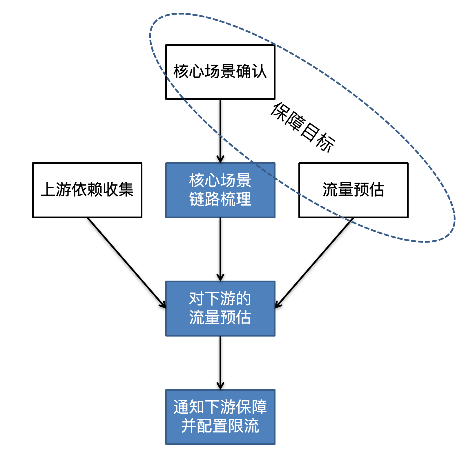 具体再总结一下重点,如下图所示,在梳理出核心场景链路后,对各服务进行流量预估时,特别要注意对下游服务的流量预估,一方面需要从核心场景入手计算,另一方面还要考虑到对上游其他服务的依赖。