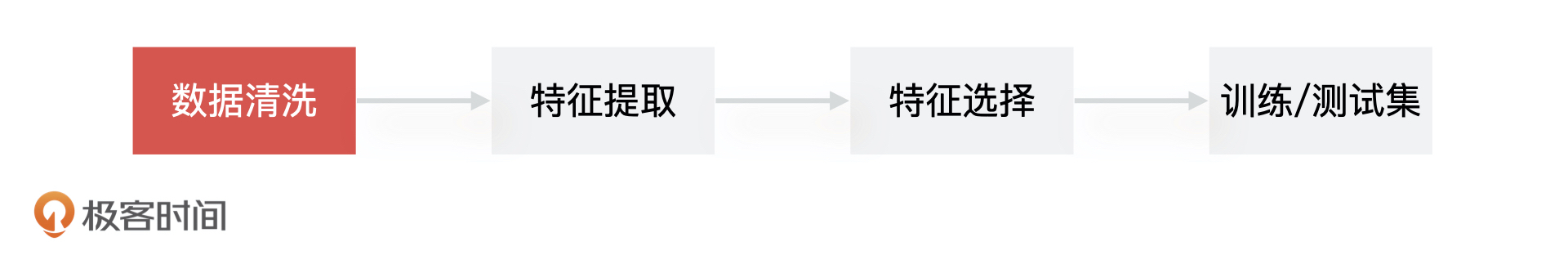 更具体点来说,建立特征工程的流程是,先做数据清洗,再做特征提取,之后是特征筛选,最后是生成训练/测试集。