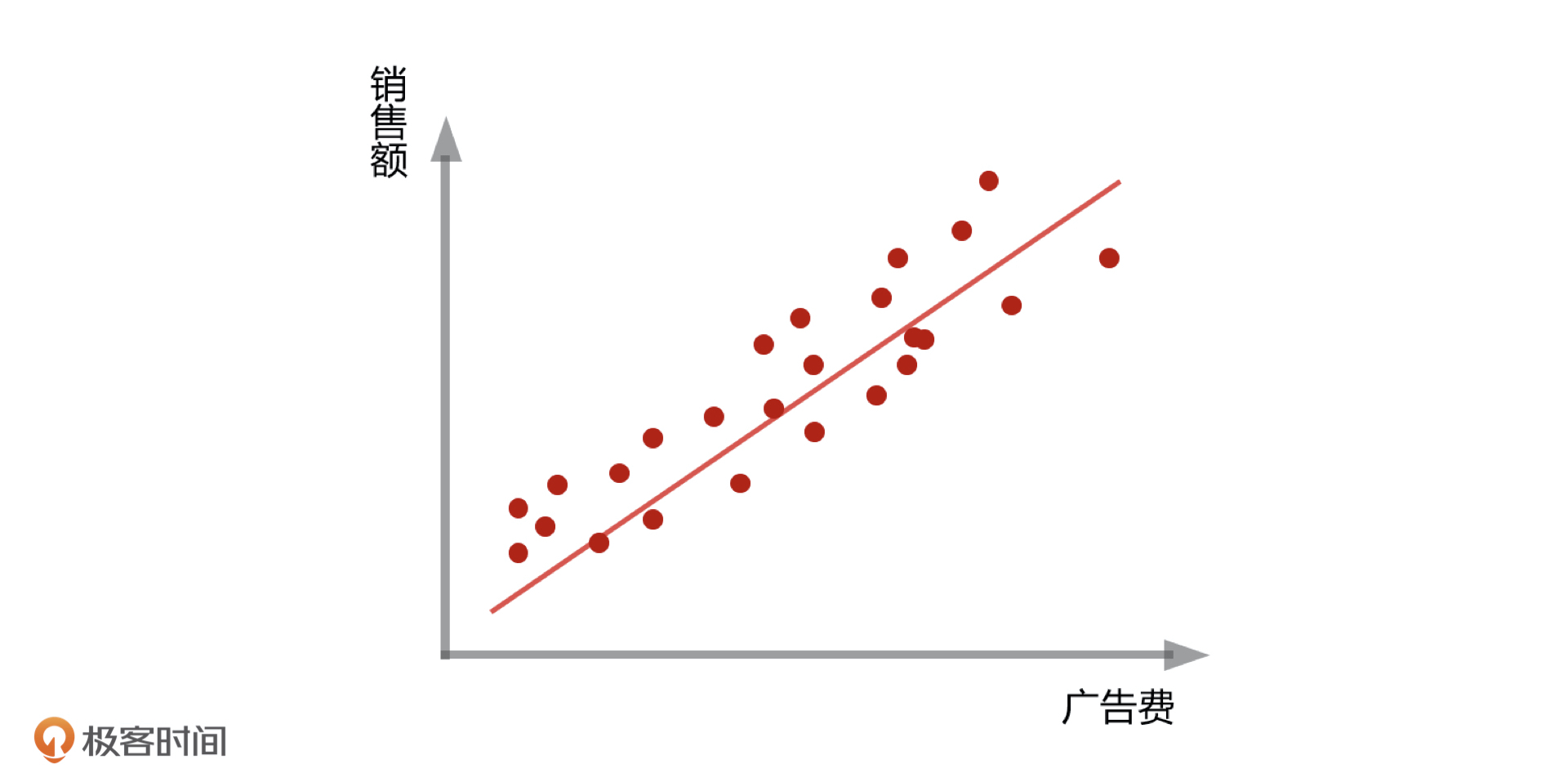 虽然它对于每一个单点来说都不是那么精确,但有了这条线,你只需要设定一个广告费的数额,就一定能计算出一个销售额。这样一来,当你在开部门周会的时候,就可以跟领导汇报:“只要我们投入多少的广告费用,GMV 就能达到我们这个月的指标”。