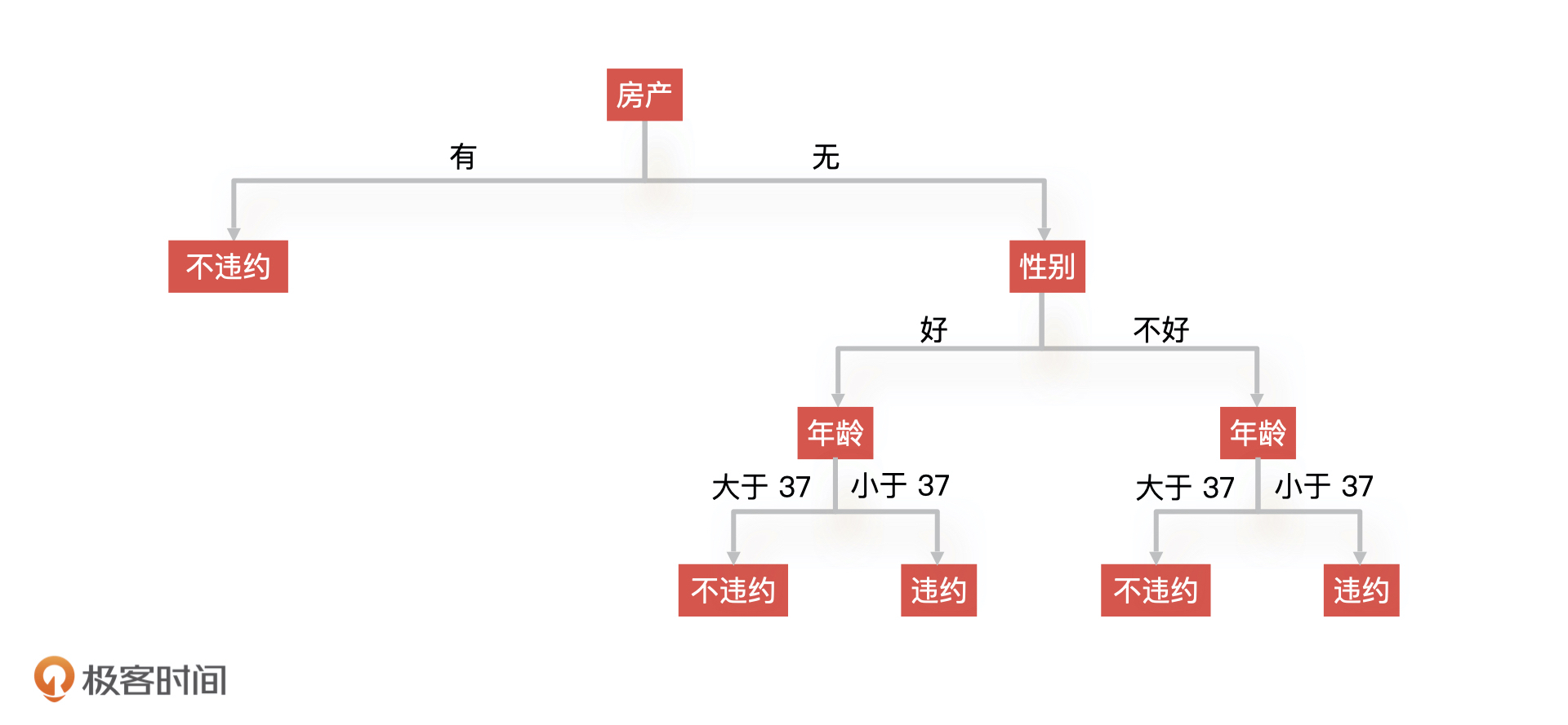 这节课,我就通过决策树预测用户会不会违约的例子,来给你讲讲决策树和随机森林的原理和应用。