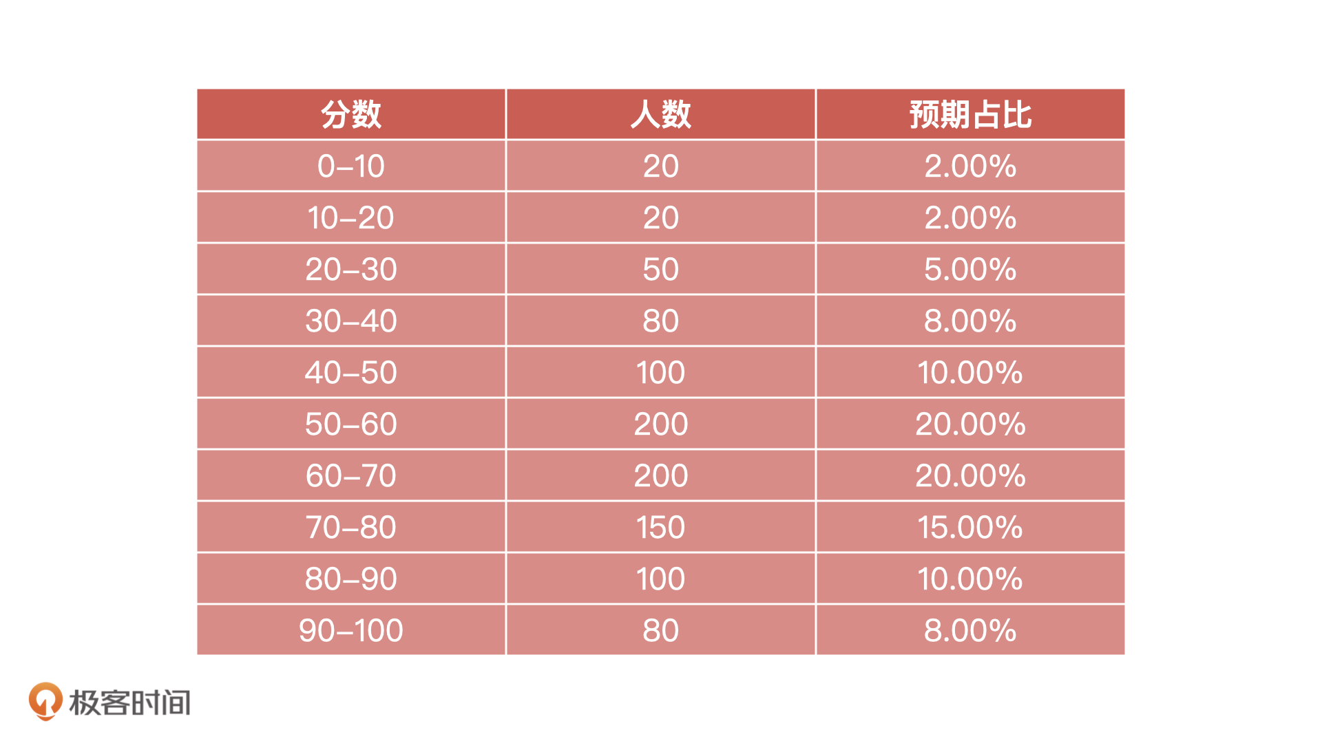 因为PSI看的是分数段中人数波动情况,所以这里我们选择对预期分布进行等距分箱,也就是上面的分箱方式。