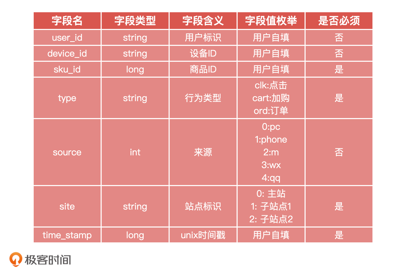 首先是用户行为数据埋点字段: