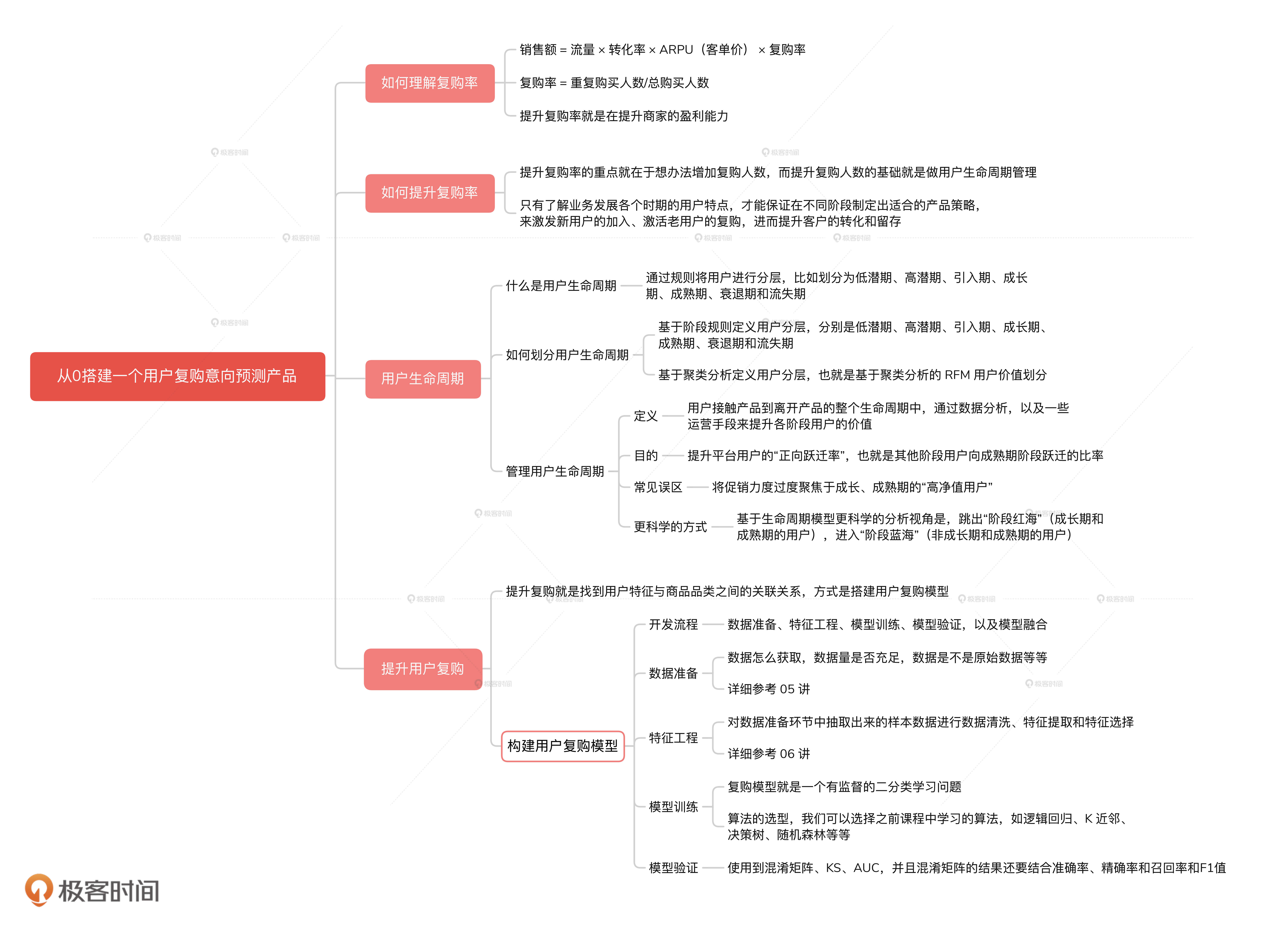为了帮助你查缺补漏,我在文稿中把预测类模型要关注的核心知识点总结成了一张脑图,希望你能好好利用起来。