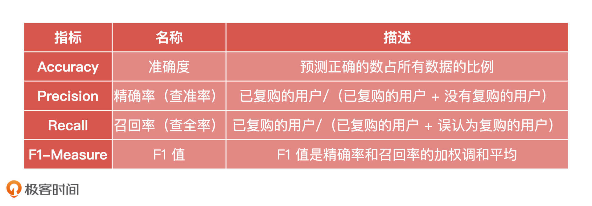 另一方面是要掌握预测模型的构建:复购模型是一个比较经典的 AI 预测模型,产品经理要掌握模型的整个构建过程和评价标准。
