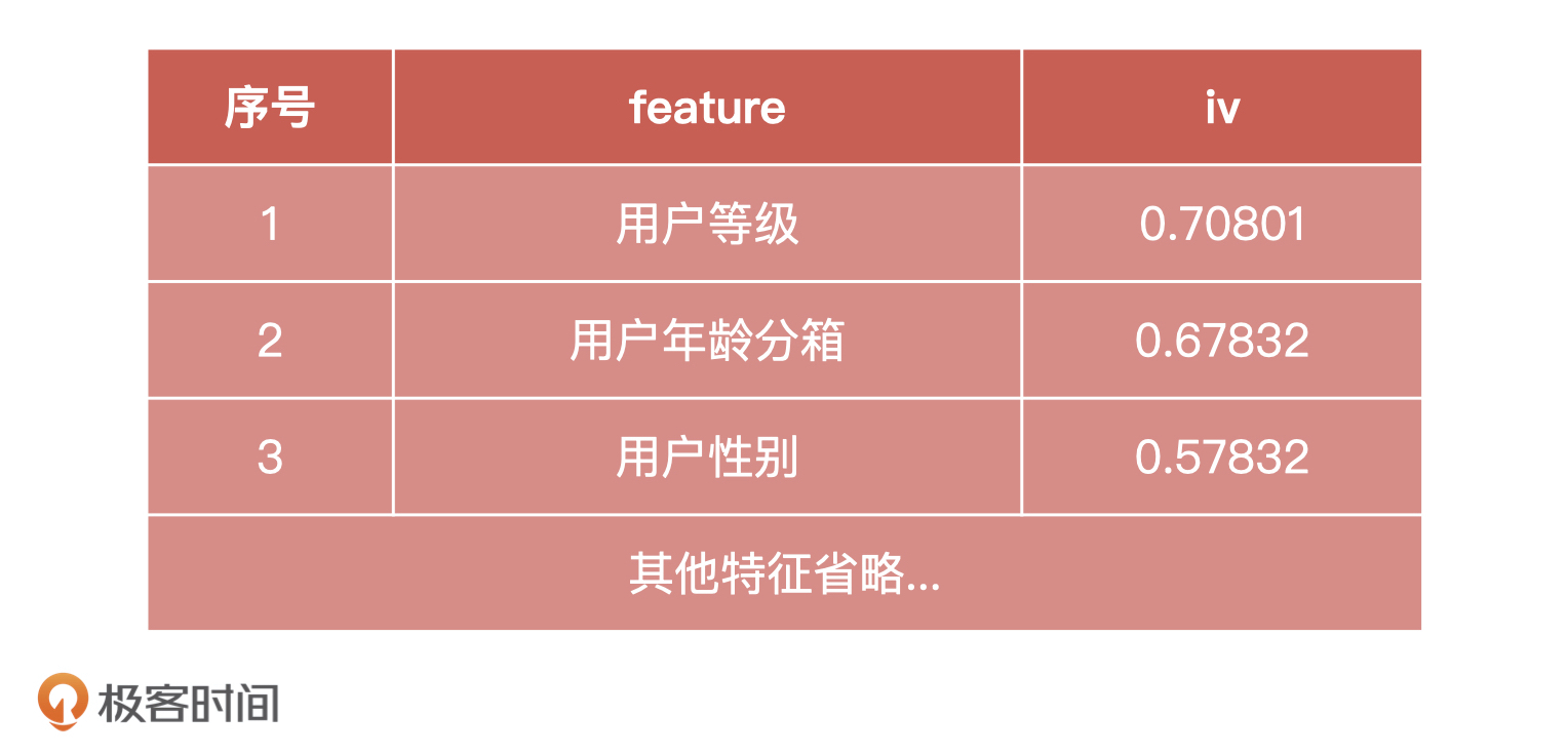 接着是建立特征工程。 我们基于两个渠道来的流量,选择了同样的入模变量,并用 IV 值对它们进行排序,表格如下: