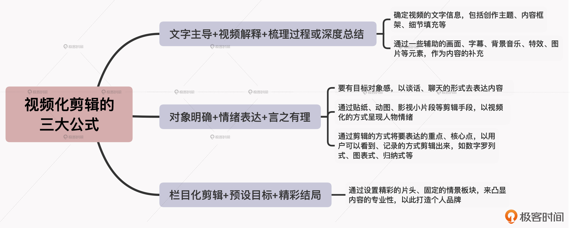 这就是咱们今天这节课的重点了。我会通过视频化剪辑的三大公式,带你轻松掌握短视频剪辑的底层逻辑,让你不管在哪个内容领域创作,都可以快速找到视频剪辑的方法。