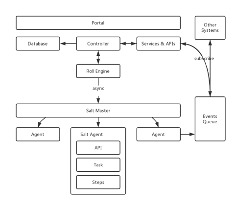 Roll Engine,即发布引擎,主要负责创建发布批次,按批次粒度实施部署策略,通过异步方式调用Salt Master服务,再分发到各个Agent节点上执行部署任务。真正的单机部署脚本会根据不同的应用或机型进行分发和定制。而 Controller ,则作为接收外部指令和读写数据的控制器。当然,对于一些对外的通知事务,发布系统会采用消息机制向外广播。