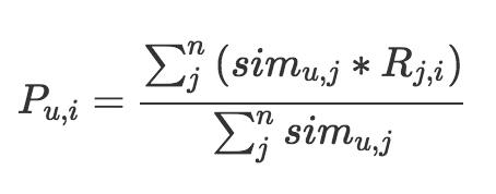 这个公式也是很简单的。等号左边就是计算一个物品i和一个用户u的匹配分数,等号右边是这个分数的计算过程,分母是把和用户u相似的n个用户的相似度加起来,分子是把这n个用户各自对物品i的态度,按照相似度加权求和。