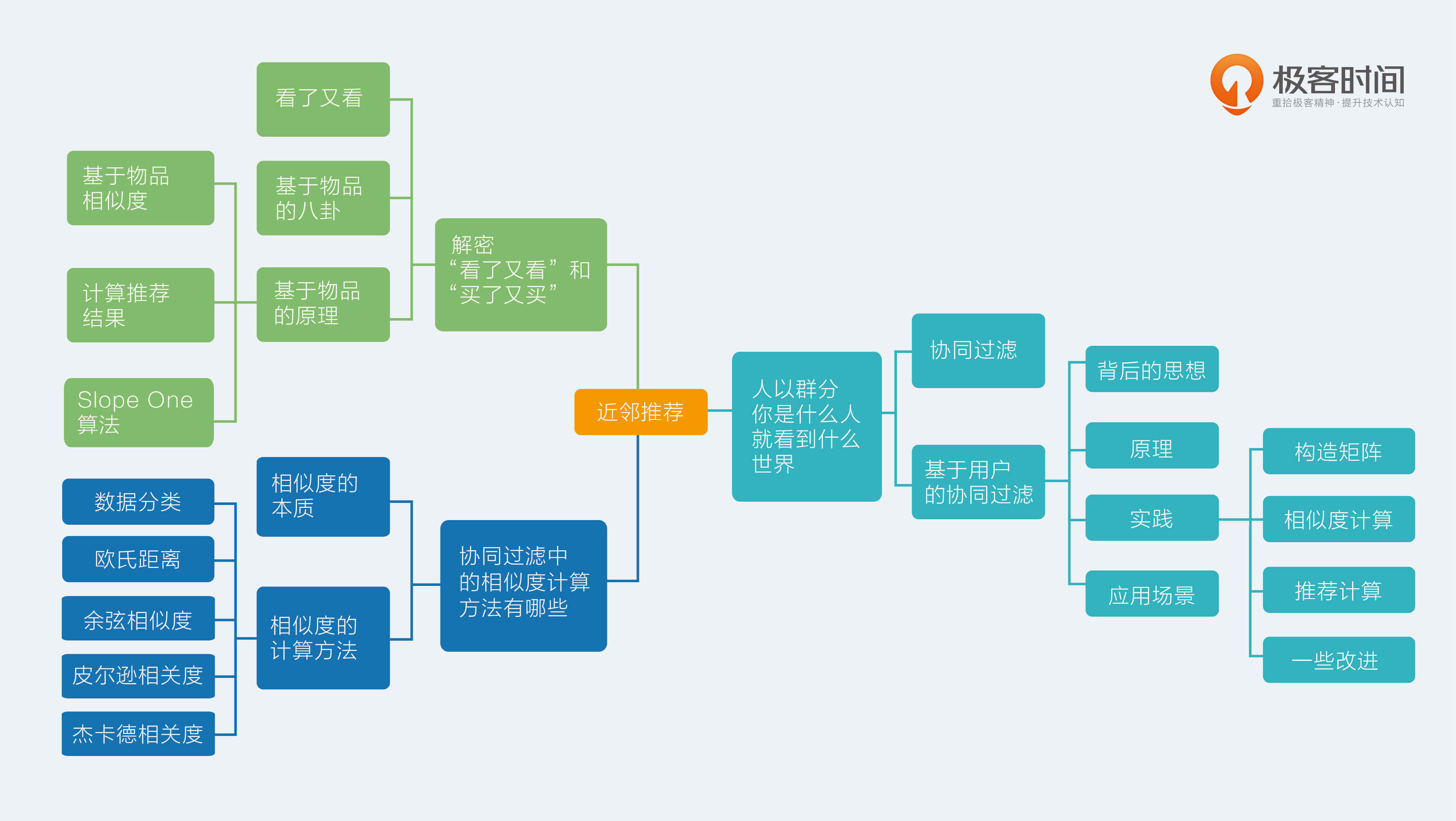 这里说的近邻,并不一定只是在三维空间下的地理位置的近邻,在任意高维空间都可以找到近邻,尤其是当用户和物品的特征维度都很高时,要找到用户隔壁的邻居,就不是那么直观,需要选择好用适合的相似度度量办法。