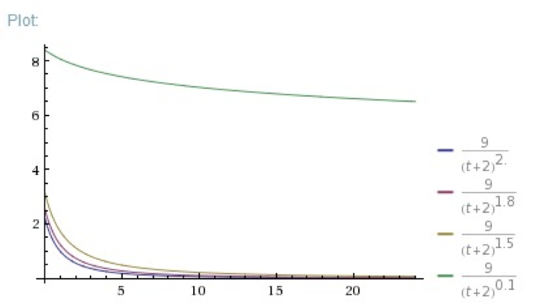 用这个公式加上自己产品的要求来确定 \(alpha\) 就容易得多,假如按照B = 24,也就是过一天来看,我来举几个例子。