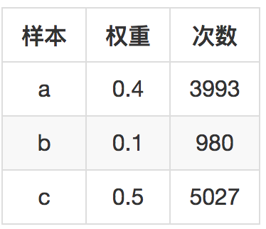 遍历之后,按照采样分数排序,输出前k个结果就是你得到的采样结果。可以编程简单做个模拟,比如下面有这样几个简单样本。
