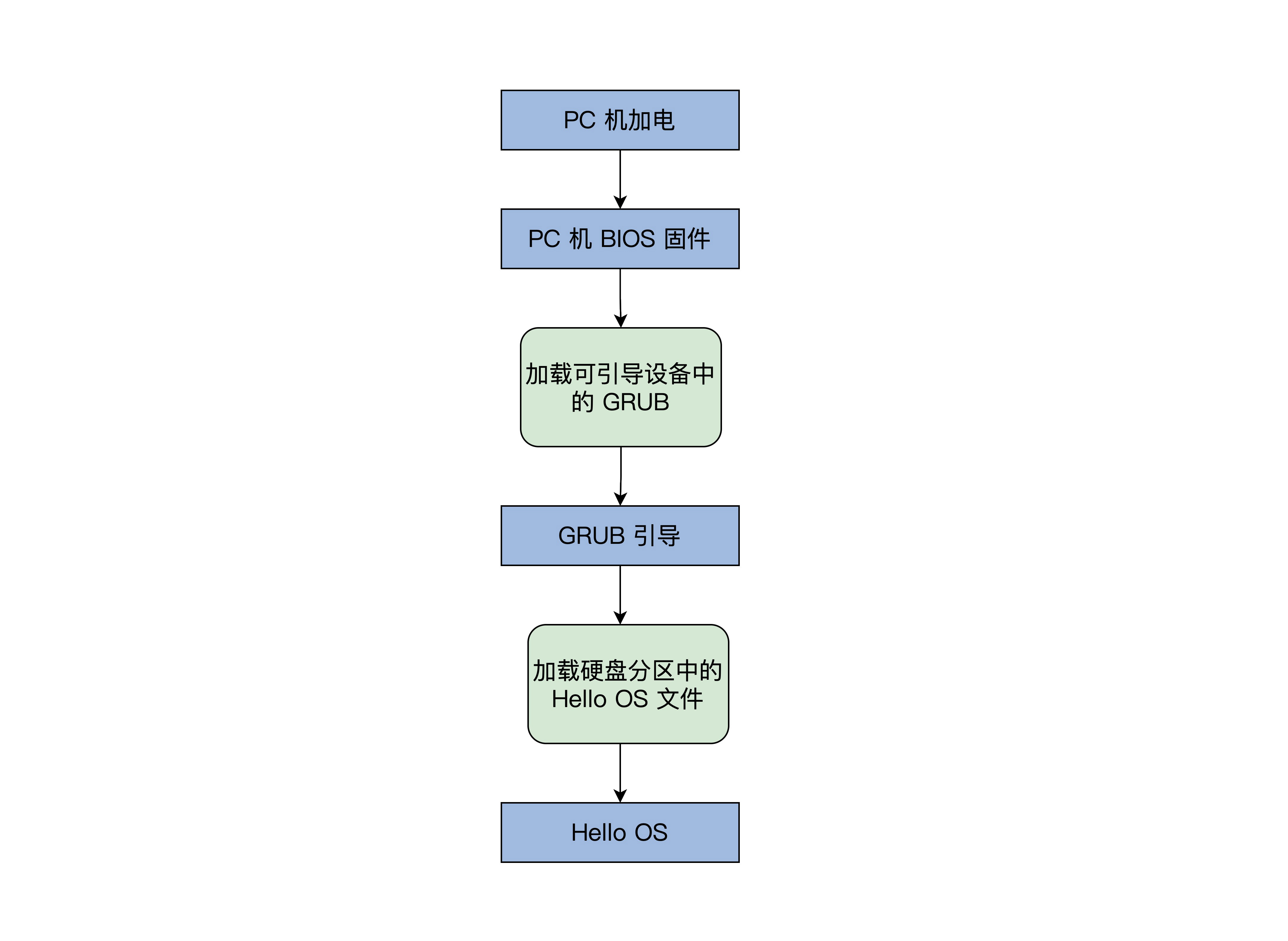 那在写Hello OS之前,我们先要搞清楚Hello OS的引导流程,如下图所示:
