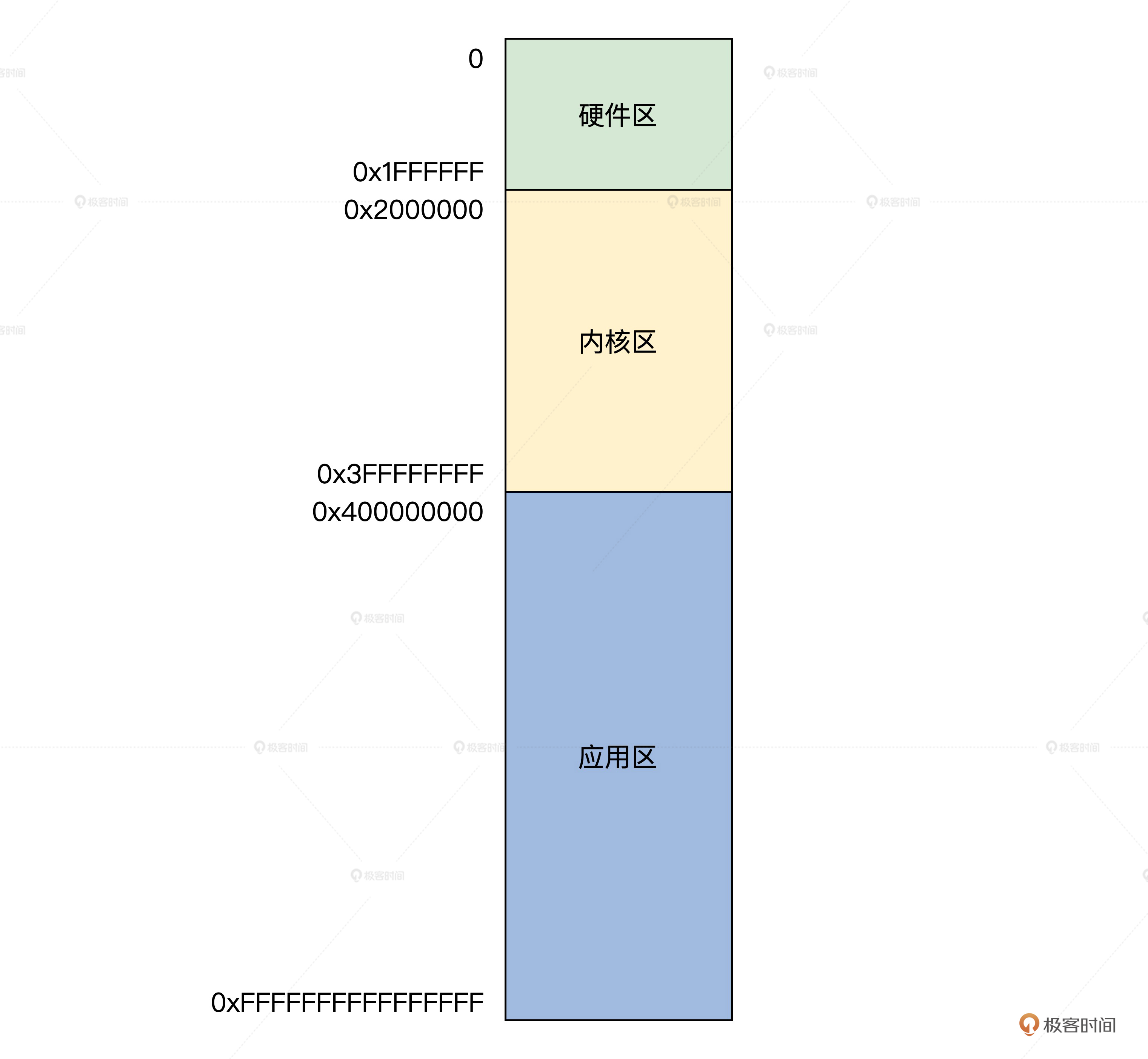 根据前面的图片,我们发现把物理内存分成三个区,分别为硬件区,内核区,应用区。那它们有什么作用呢?我们分别来看看。