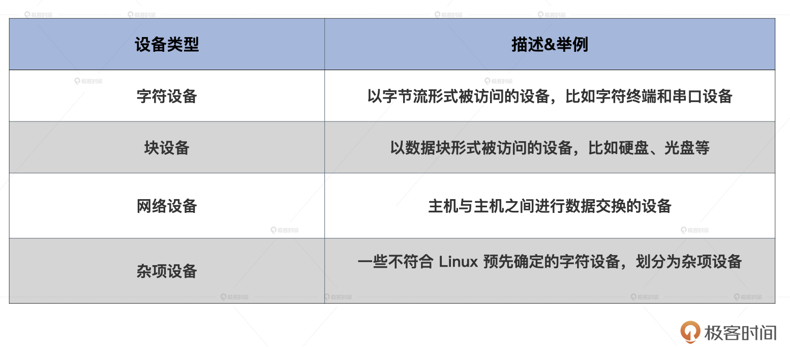 今天,我们就来看看Linux是如何管理设备的。我们将从Linux如何组织设备开始,然后研究设备驱动相关的数据结构,最后我们还是要一起写一个Linux设备驱动实例,这样才能真正理解它。