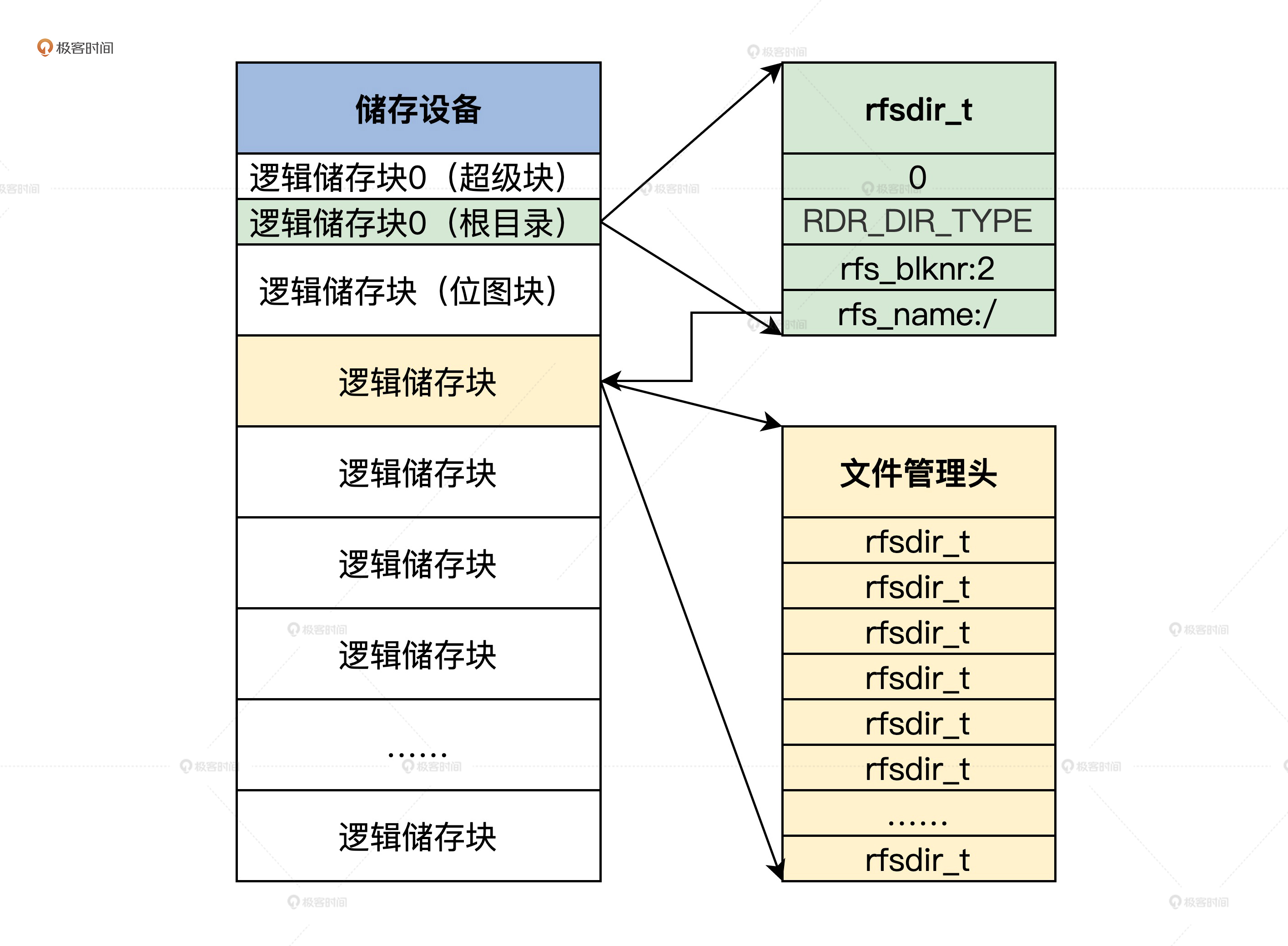 我们文件系统的超级块,保存在储存设备的第一个4KB大小的逻辑储存块中,但是它本身的大小没有4KB,多余的空间用于以后扩展。rfsdir_t数据结构是一个目录数据结构,你先有个印象,后面我们会有介绍的。