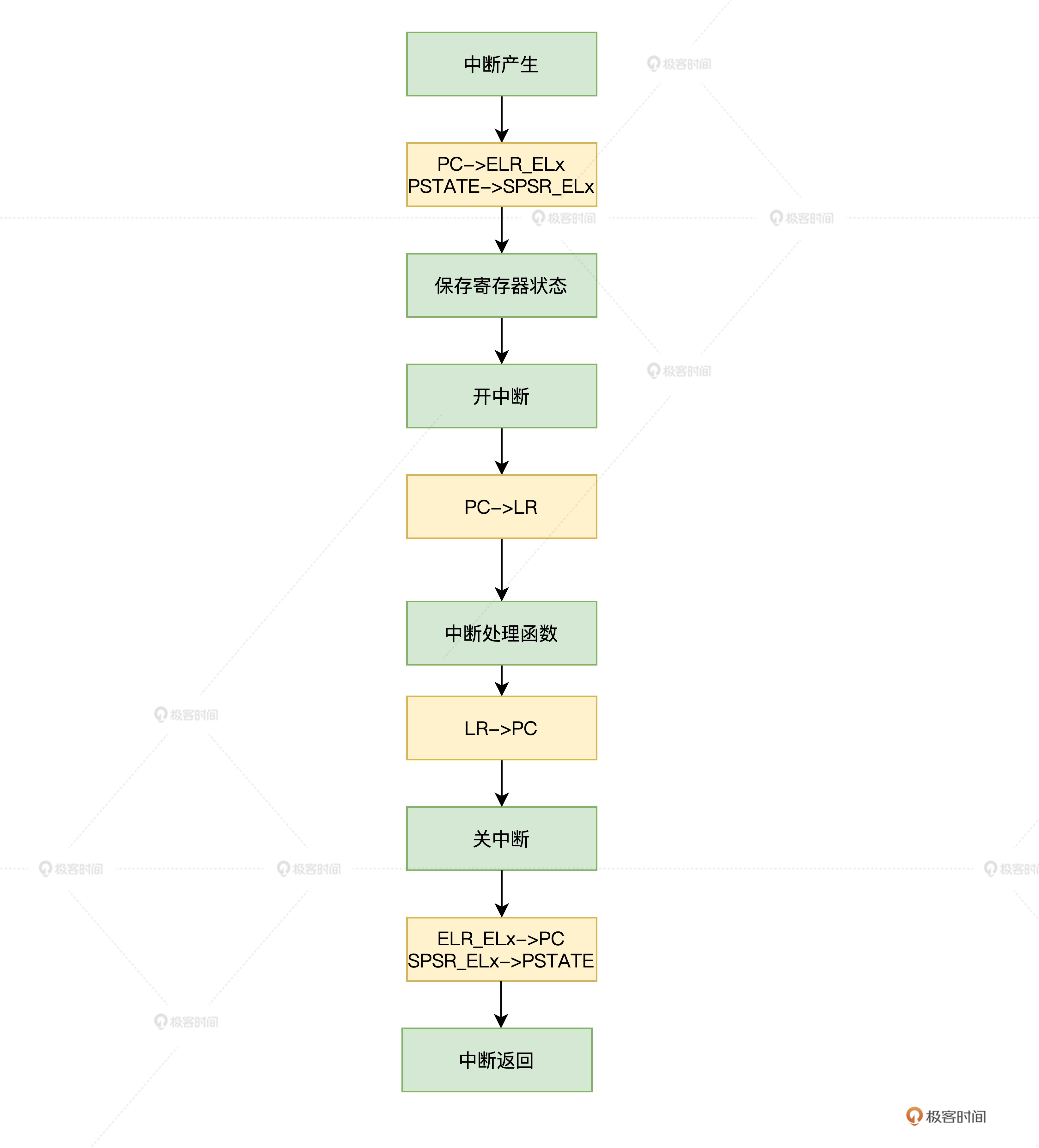 好了,以上就是CPU切换工作的细节,有了这个基础,接下来我们一起看看AArch64体系下CPU是如何处理中断或者异常的。