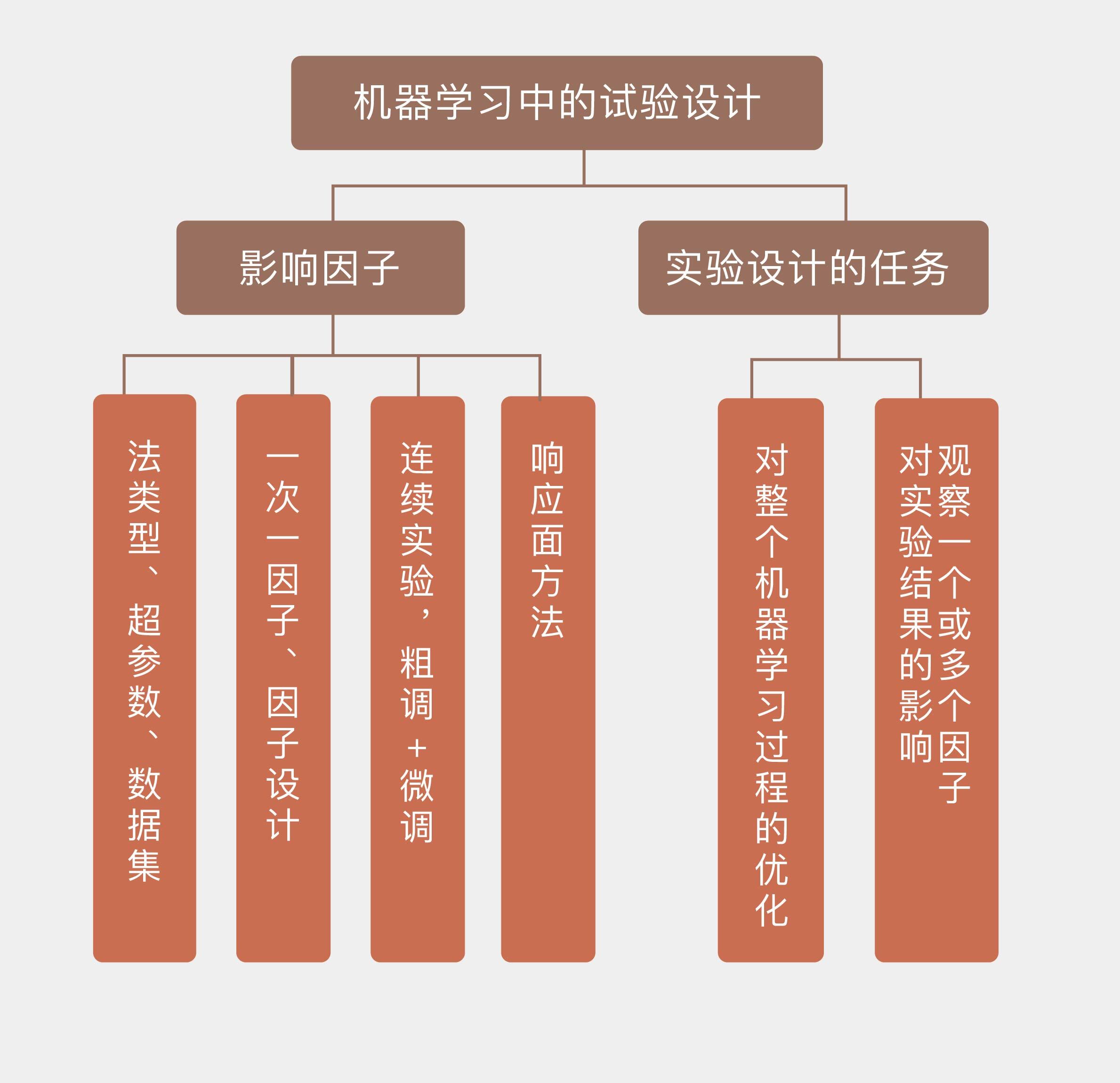 机器学习中,实验设计中的因子包括算法类型、超参数、数据集等;