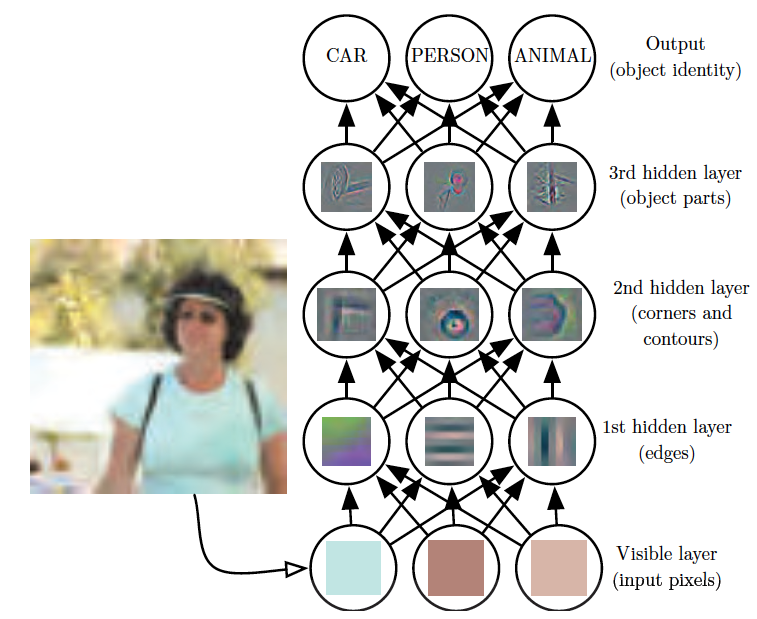 深度学习示意图(图片来自Deep Learning,图1.2)