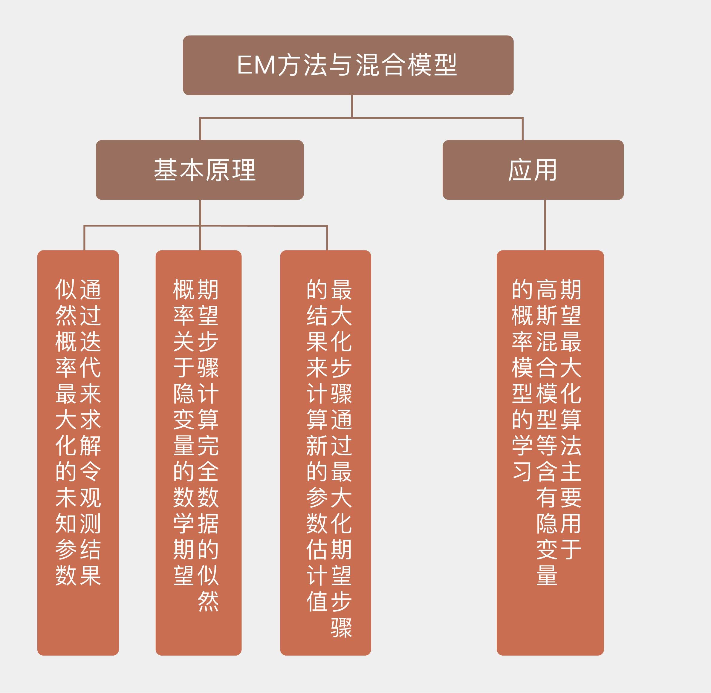 今天我和你分享了期望最大化算法的基本原理,及其在高斯混合模型中的应用,包含以下四个要点: